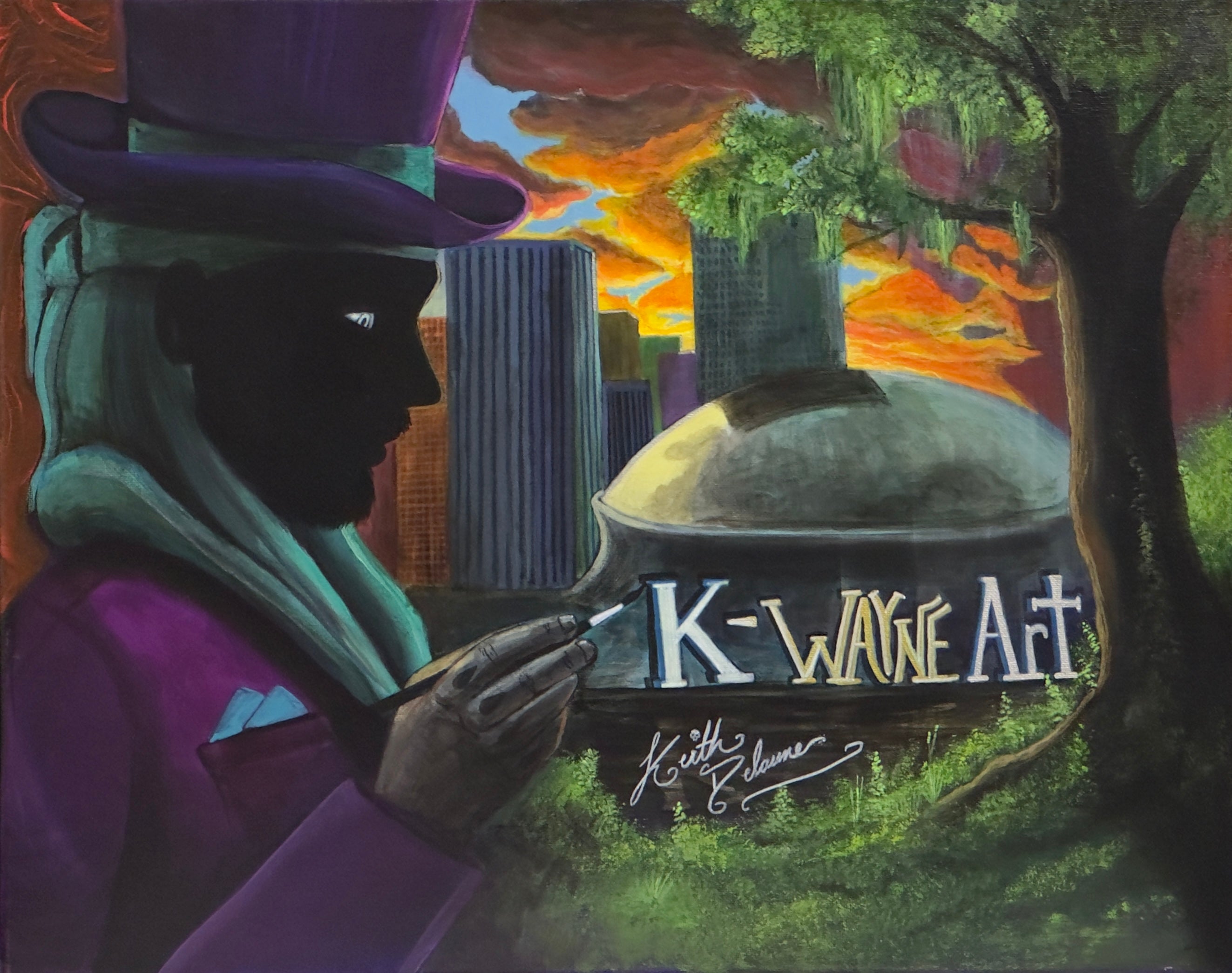Through bold brushstrokes and bright colors, I try to capture the spirit of New Orleans in a way no one else does. My work is infused with the city’s soul—the music, the mystery, the grit, and the glitter—brought to life on canvas with playful intensity and raw emotion.